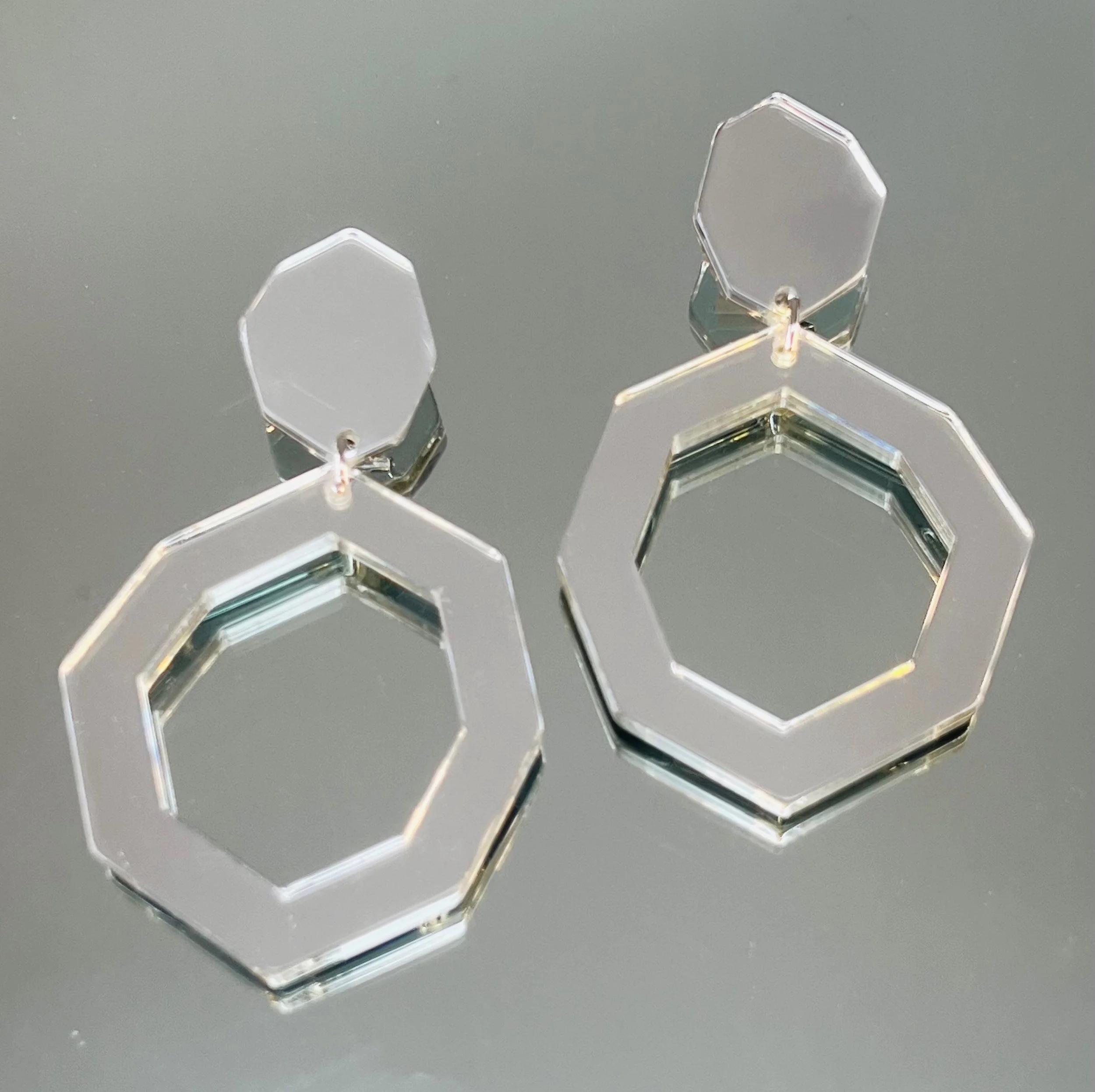 WHAT HAPPENS WHEN AN ACCESSORY DESIGNER COLLIDES WITH AN EARRING ENTHUSIAST? Introducing the DIANA BROUSSARD X sense(ible) mirrored resin drop earring—a seamless blend of modern artistry and refined craftsmanship, the favorite earring of @BUYMECHANEL, Chanel Tyler. These statement-making earrings feature sleek, mirrored resin drops that catch the light with every movement, embodying understated elegance. Designed with a minimalist silhouette and unexpected detailing, they complement any outfit with quiet confidence. Crafted with precision in Italy, this collaboration elevates the everyday look with a fresh, urban edge. Perfect for the chic woman who values sophistication and originality.